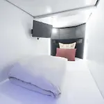 In den Zimmern des Kapselhotels stehen den Gästen ein persönlicher Safe, ein Schreibtisch und TV zur Verfügung.